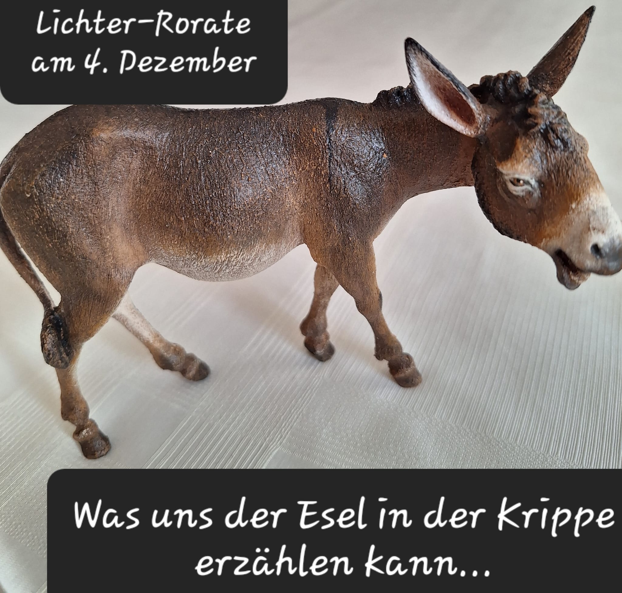 Das erste adventliche Lichter-Rorate lässt von den Krippenfiguren den Esel "auftreten" und uns seine Botschaft nahe bringen.