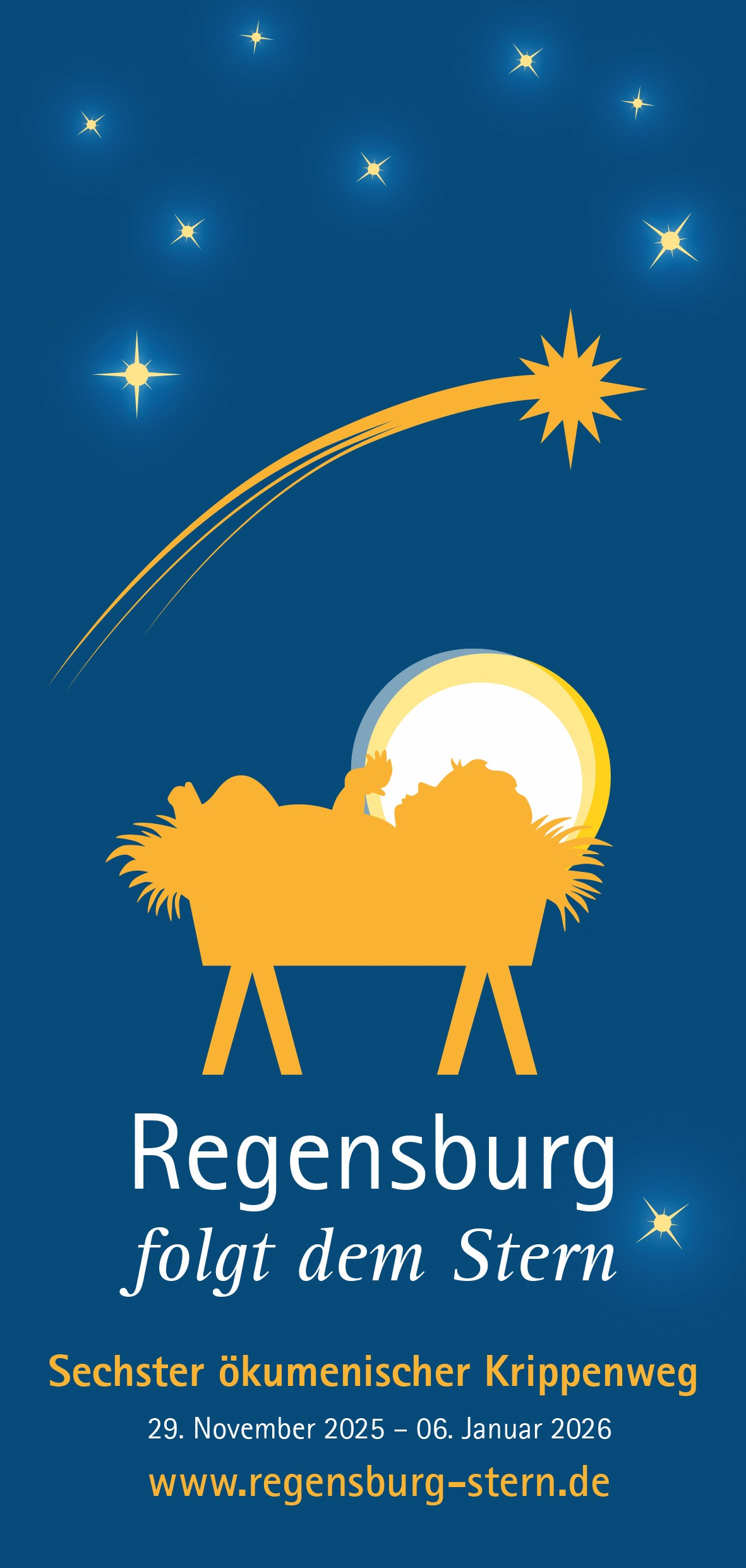 Der mittlerweile sechste Ökumenische Krippenweg in der Stadt Regensburg lädt vom 29. November 2025 bis zum 6. Januar 2026 die Besucher dazu ein, das Weihnachtsgeheimnis auf vielfältige Weise zu entdecken. Mit insgesamt 84 Krippen – so vielen wie nie zuvor – verteilt auf Foyers, Schaufenster, Kirchen, Museen, Gaststätten und Geschäfte in der Altstadt und darüber hinaus, bietet der Krippenweg eine spannende Entdeckungsreise quer durch Regensburg.