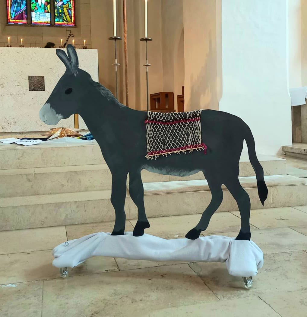 In der Adventszeit ist in der Stadtpfarrkirche Neustadt ein kleiner Esel zu finden. In den Familiengottesdiensten an den Adventssonntagen ist er mit uns auf dem Weg zur Krippe und hilft uns dabei, Hoffnungssterne auf unserem Weg zu entdecken.