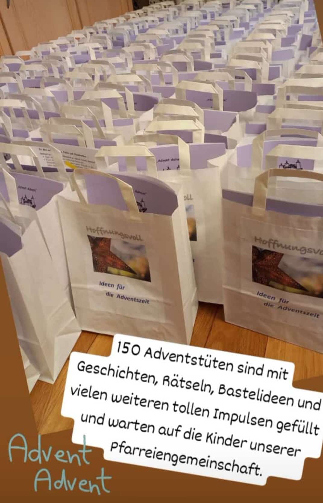 In Mühlhausen verteilt der Pfarrgemeinderat die Tüten an die Familien; in Neustadt kann man sie sich bei der Segnung der Adventskränze, im Familiengottesdienst am 1. Advent sowie jederzeit in der Stadtpfarrkirche (Kindertisch) holen.