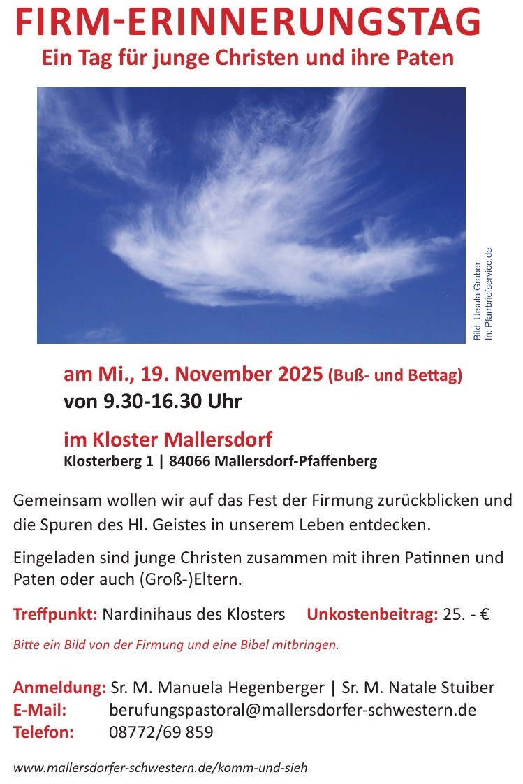 Ein Tag für junge Christen und ihre Paten im Kloster Mallersdorf