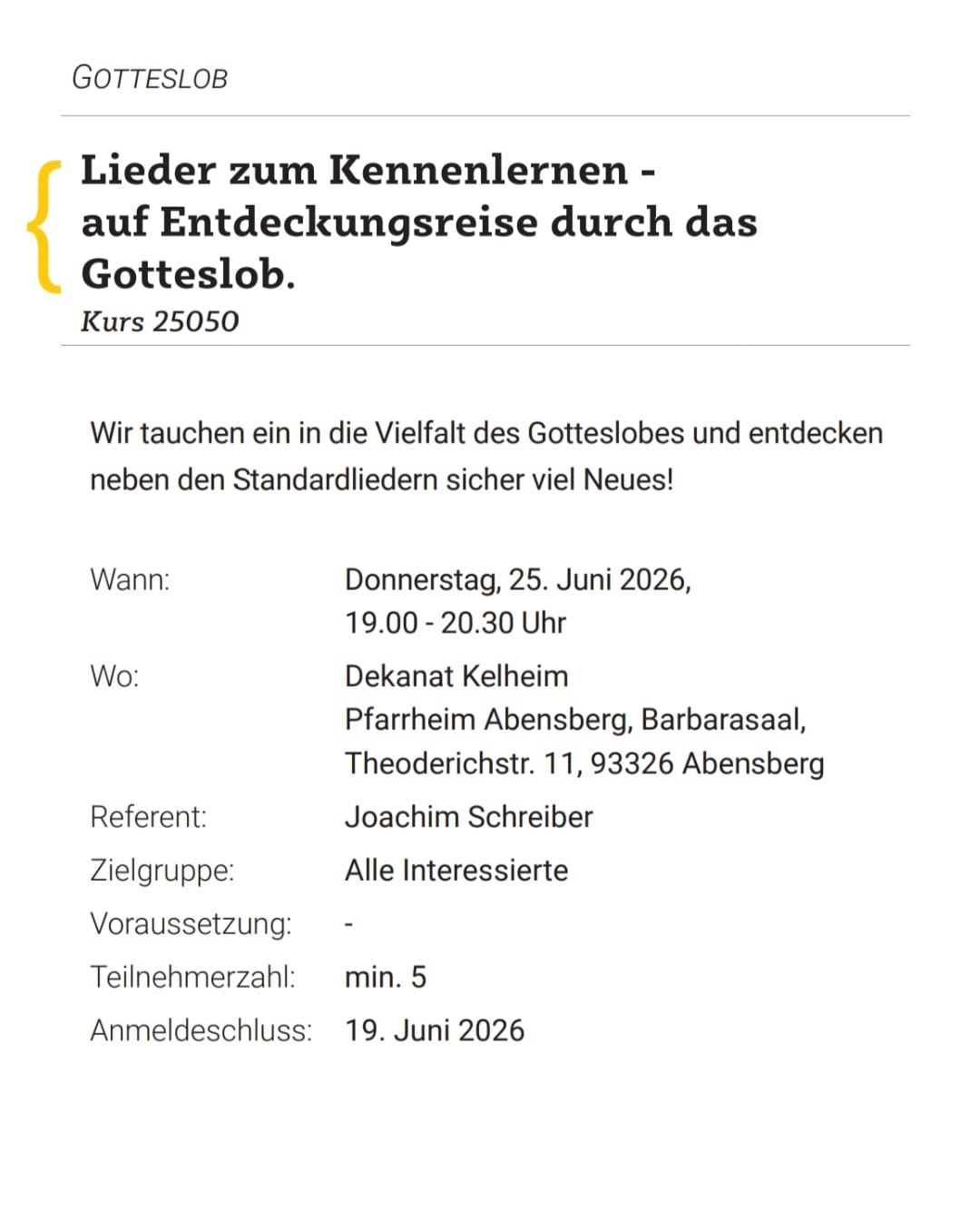 In Zusammenarbeit mit der KEB (Katholischen Erwachsenenbildung) lädt die Pfarreiengemeinschaft am Mittwoch, 18. März 2026 um 19.00 Uhr in das Pfarrheim St. Vitus, Mühlhausen (Geibenstettener Str. 17) ein.