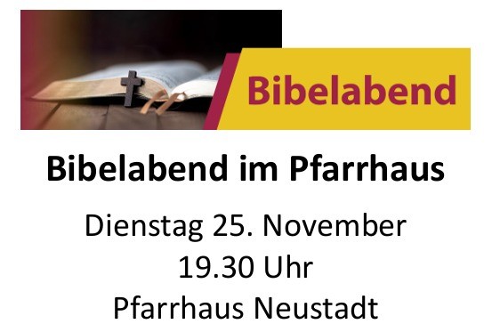 Am Mittwoch, den 19. November, ist der schulfreie Buß- und Bettag. An diesem Tag laden wir zu einem Kinderbibeltag ins Pfarrheim Neustadt ein!